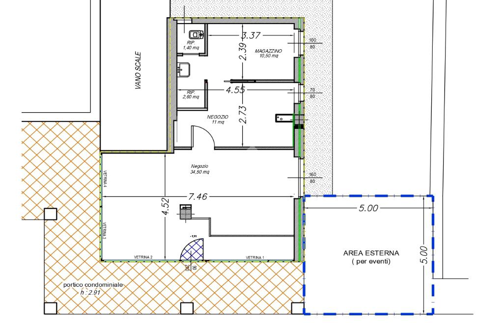 L'immobile offre uno spazio ben distribuito ed è composto da tre locali distinti, da pareti rimuovibili, e un bagno con finestra e antibagno. L’ambiente è luminoso e accogliente grazie alle tre ampie vetrine ed è ideale per attività che puntano a catturare l’attenzione del pubblico e valorizzare l’esposizione dei prodotti.