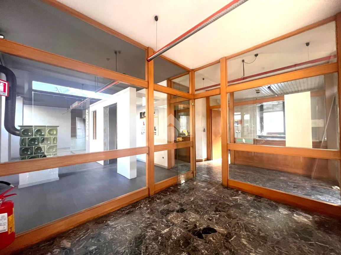 Gli ambienti, attualmente suddivisi in più locali, consentono diverse configurazioni: open space moderno, uffici direzionali, area reception, sale riunioni o spazi dedicati al pubblico. La presenza delle vetrine rende l’immobile ideale anche per attività che necessitano di forte impatto visivo o contatto diretto con la clientela.
